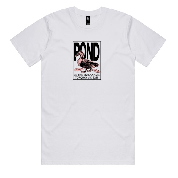 The Pond Café Esplanade Tee is a bold graphic piece inspired by vintage posters and location-based branding. Featuring a structured rectangular design with Pond Café lettering and Torquay address details, this tee brings a strong sense of place into a clean, wearable format.
